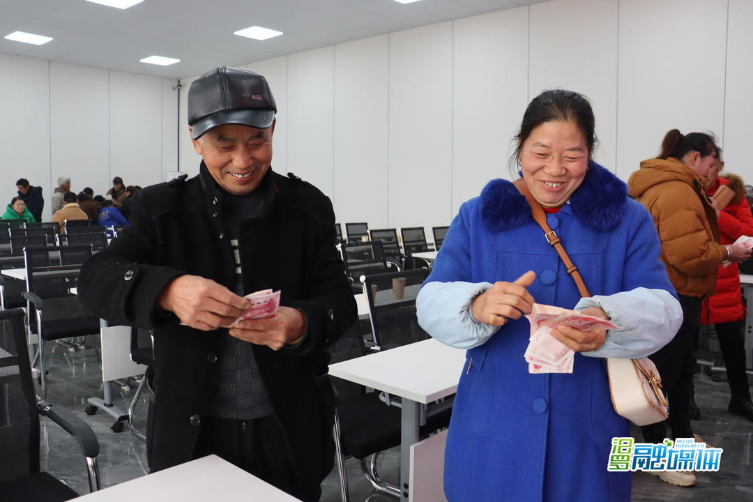 走进合作社,只见一摞摞崭新的现金整齐地码放在桌上,工作人员们有条不紊地为务工村民办理工资发放手续。村民们有序上前,仔细核对务工天数、确认金额、签字,随后接过那厚厚的一沓沓工资,脸上洋溢着幸福与满足的笑容。