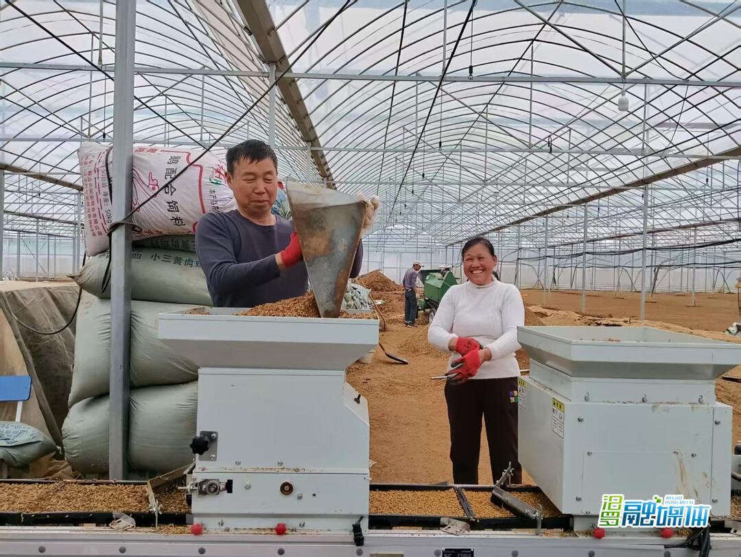 大棚另一侧,自动化育秧流水线正高速运转。从放置秧盘、底层培土,到均匀播种、二次覆土,摆盘,一系列工序一气呵成 ,平均每分钟可完成12个秧盘制作。郑建军算了一笔账:“这条生产线三天时间已经培育禾种约5000斤,满足500亩大田用秧需求,人力成本比手工育秧减少近六成。”