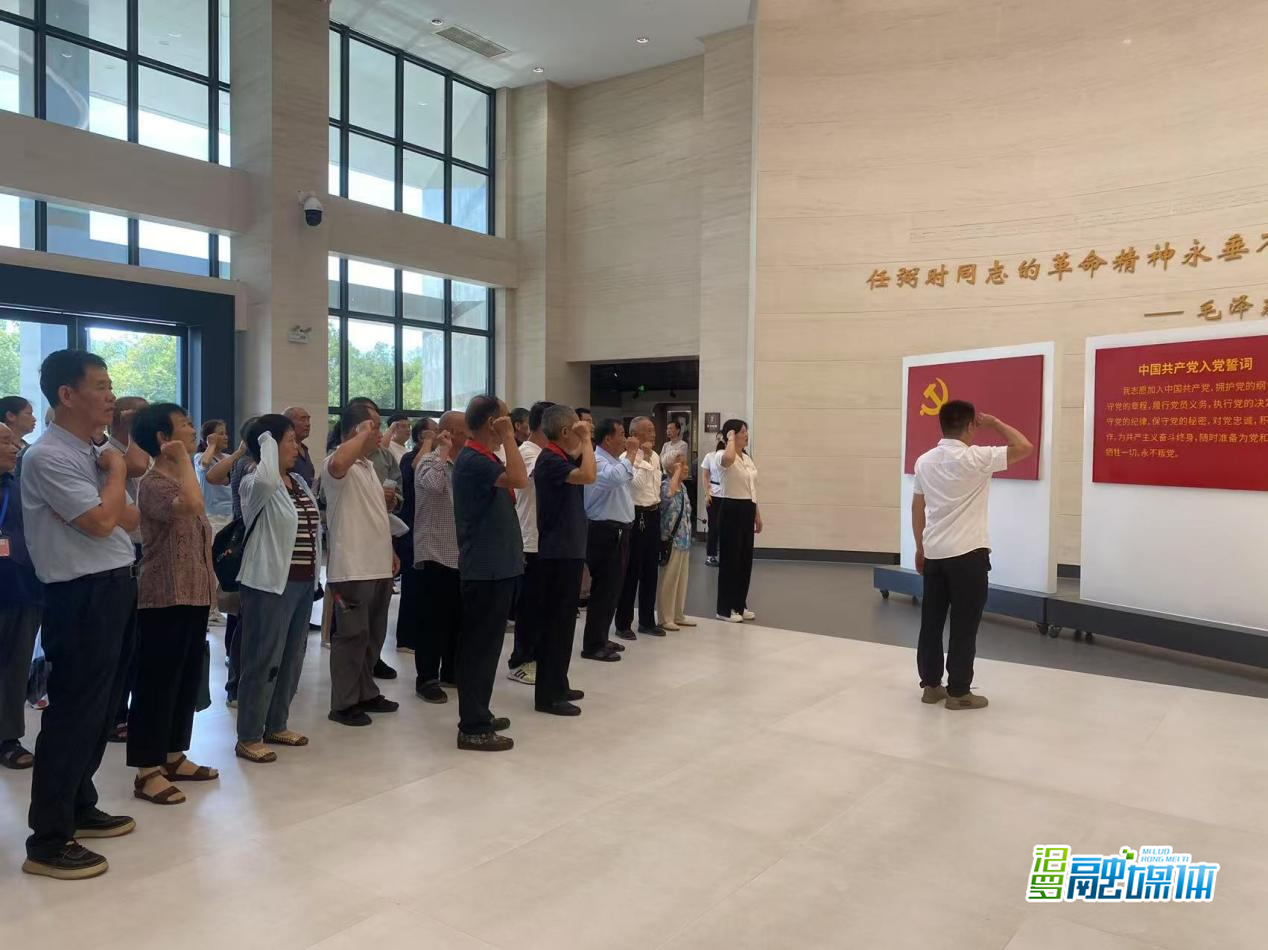 在纪念馆,全体党员庄重举行向任弼时同志铜像敬献花篮仪式,深切缅怀革命先辈的丰功伟绩。随后,大家面向鲜红党旗,为三位光荣在党50年的老党员颁发纪念章,并集体重温入党誓词。铿锵誓言回响,进一步坚定了党员们不忘初心、牢记使命,为实现中华民族伟大复兴的中国梦而不懈奋斗的决心。