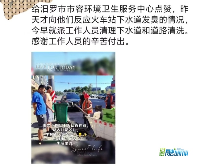 此次快速处置获得市民一致认可。周女士在朋友圈发文点赞:“给汨罗环卫中心点赞,昨天才向他们反映情况,今早就派工作人员清理下水道和道路清洗,感谢工作人员的辛苦付出。”