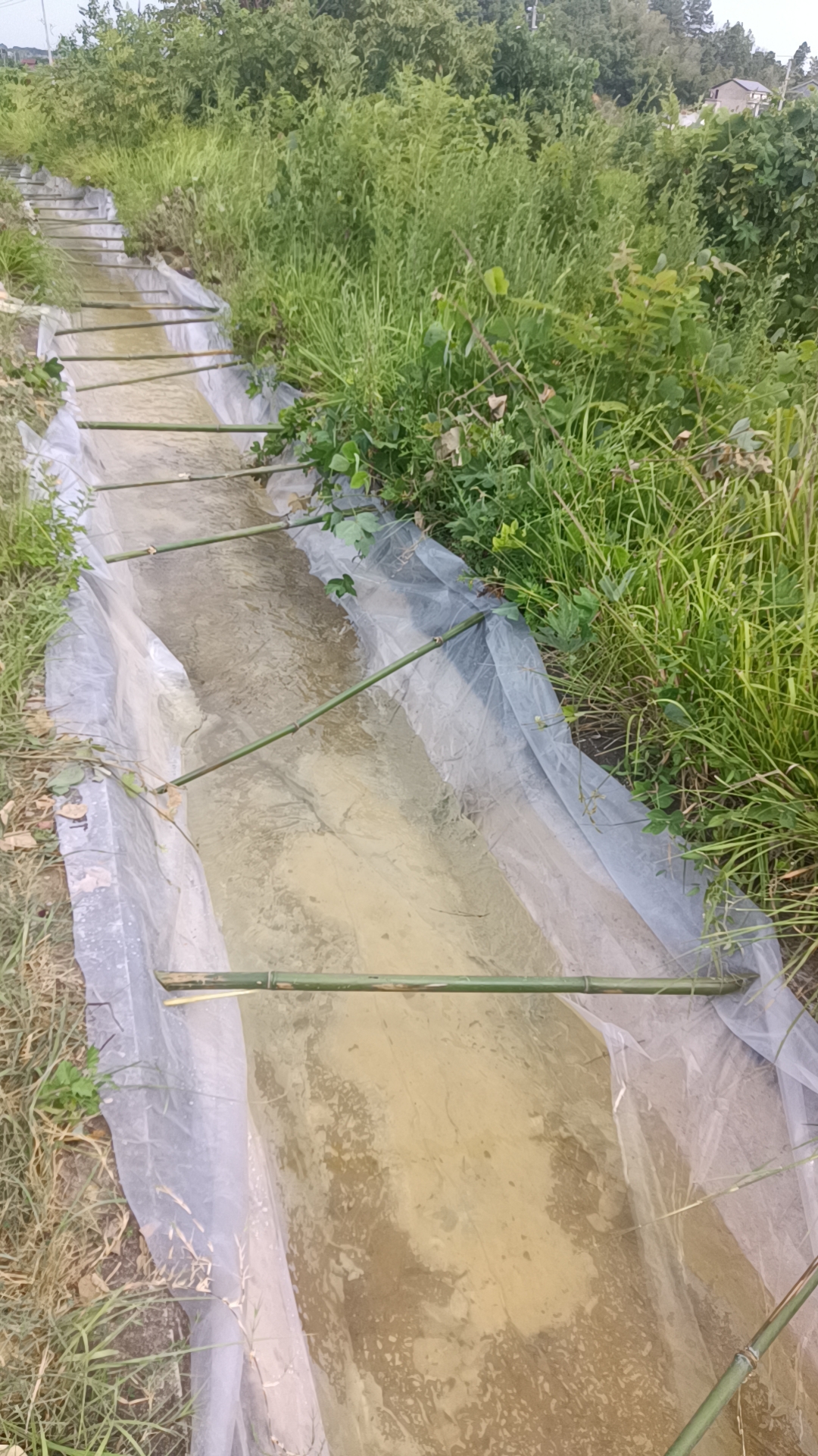 在现有沟渠内铺设厚地膜,有效减少渗漏与水流阻力