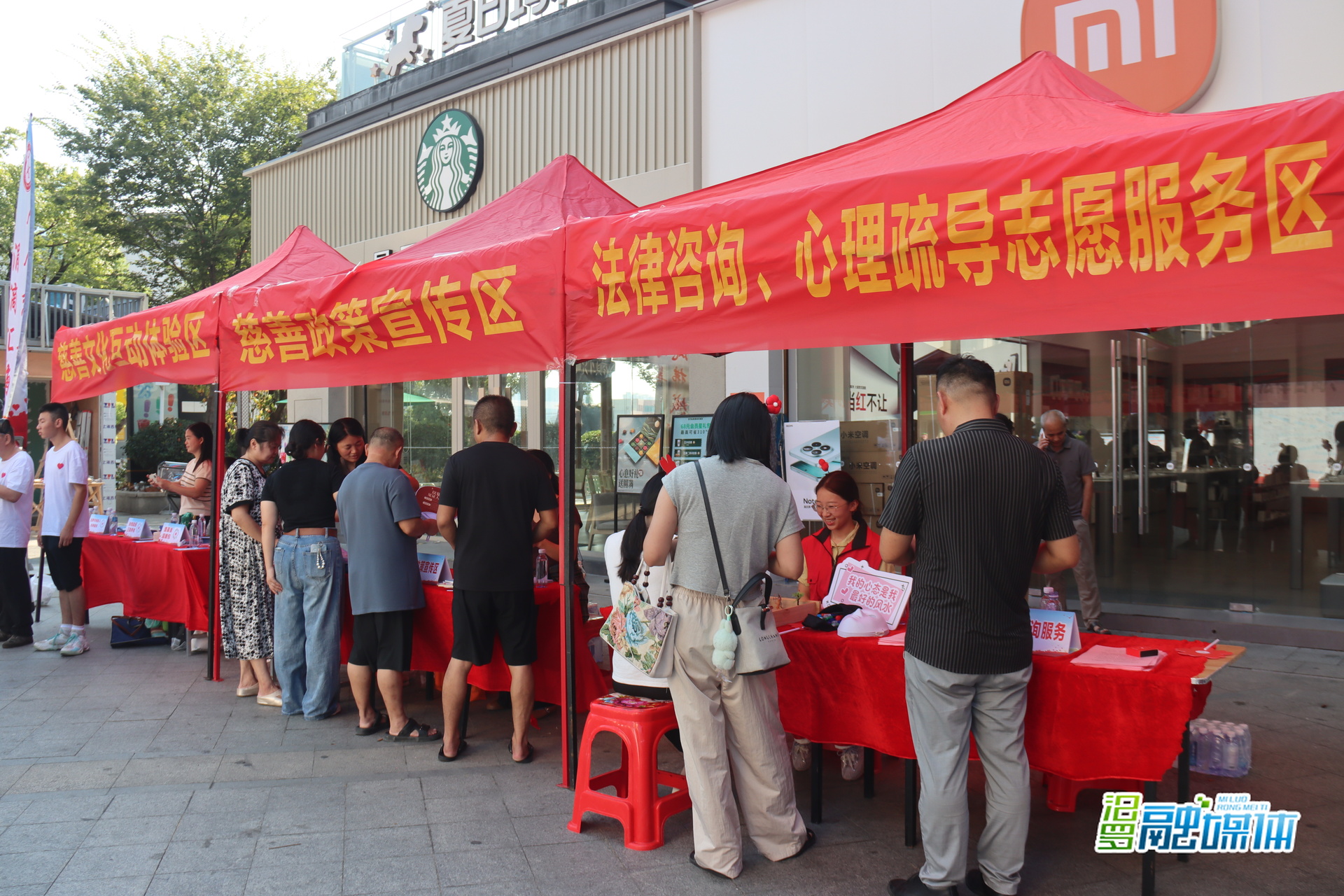 在欢乐水岸活动现场,多个功能区为市民提供多样化服务,涵盖慈善政策宣传、志愿服务与便民服务、互动体验等。政策宣传区通过展板展示、发放宣传册、设置咨询台等方式,面对面解读《慈善法》及相关政策,帮助群众深化对慈善事业的认知,提升法治参与意识。