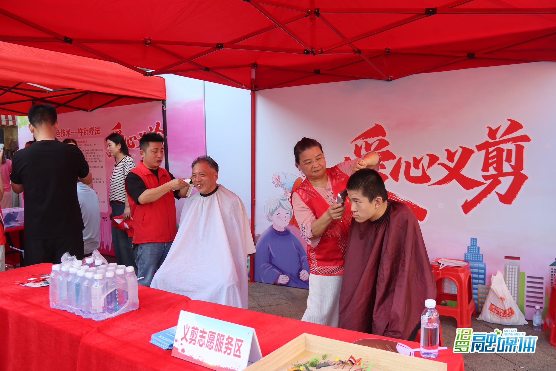 志愿服务与便民服务区精准对接民生需求,成为现场“人气焦点”。汨罗市中医医院免费提供健康检查和杵针疗法等服务,刚体验完杵针疗法的李阿姨笑着称赞:“医生手法很专业,做完肩颈一下子就松快了。”此外,爱行天下、阳光社工、同心社工等志愿服务团队开展的义剪、法律咨询和心理疏导服务,也赢得市民阵阵好评。
