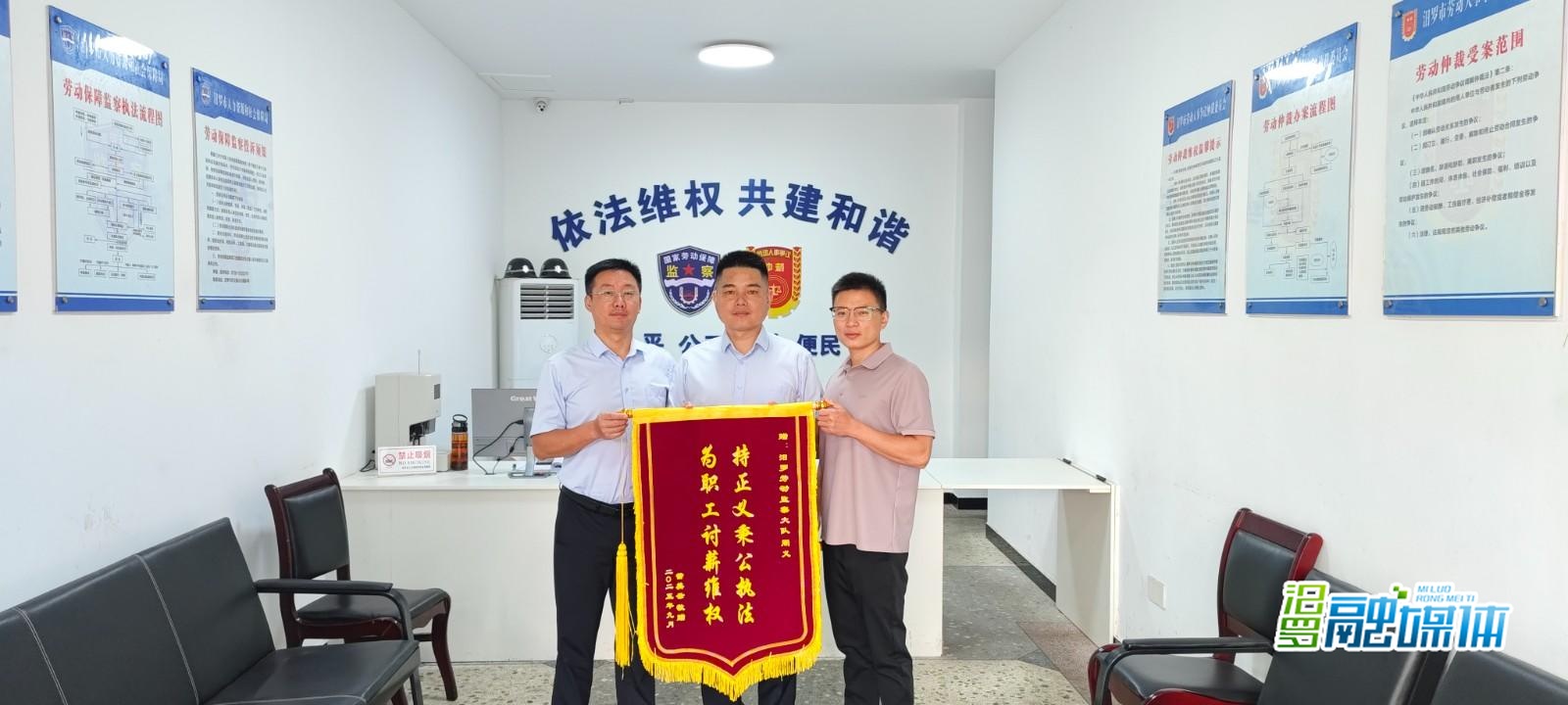 汨罗融媒体讯(通讯员 孙娟 廖清云)“没想到当场就拿到了被拖欠的工资,特别感谢周义同志不厌其烦帮我联系单位,你们真是劳动者的‘贴心人’!”近日,雷女士将一面写有“持正义秉公执法,为职工讨薪维权”的锦旗邮寄到汨罗市人社局,还专门致电表达谢意。