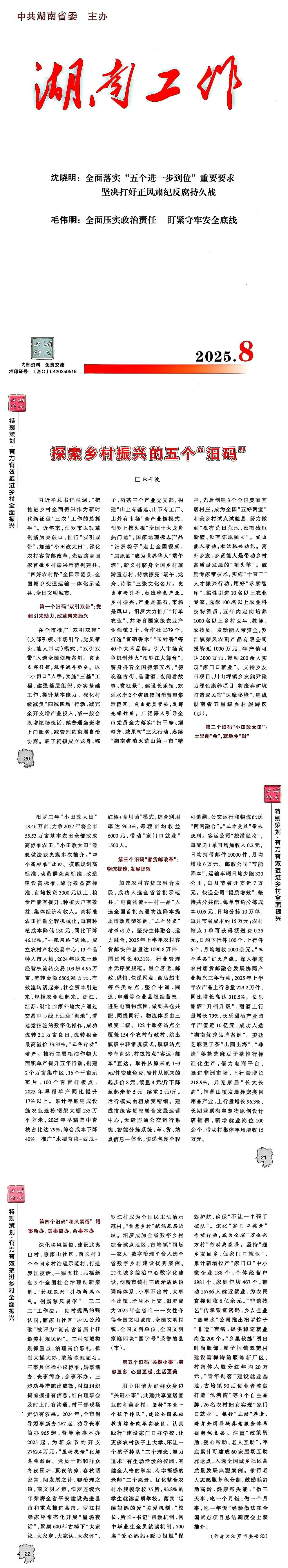 汨罗融媒体讯(记者 夏凡)近日,湖南省委主办刊物《湖南工作》2025年第8期,刊发汨罗市委书记朱平波署名文章《探索乡村振兴的五个“汨码”》,推介汨罗典型经验。