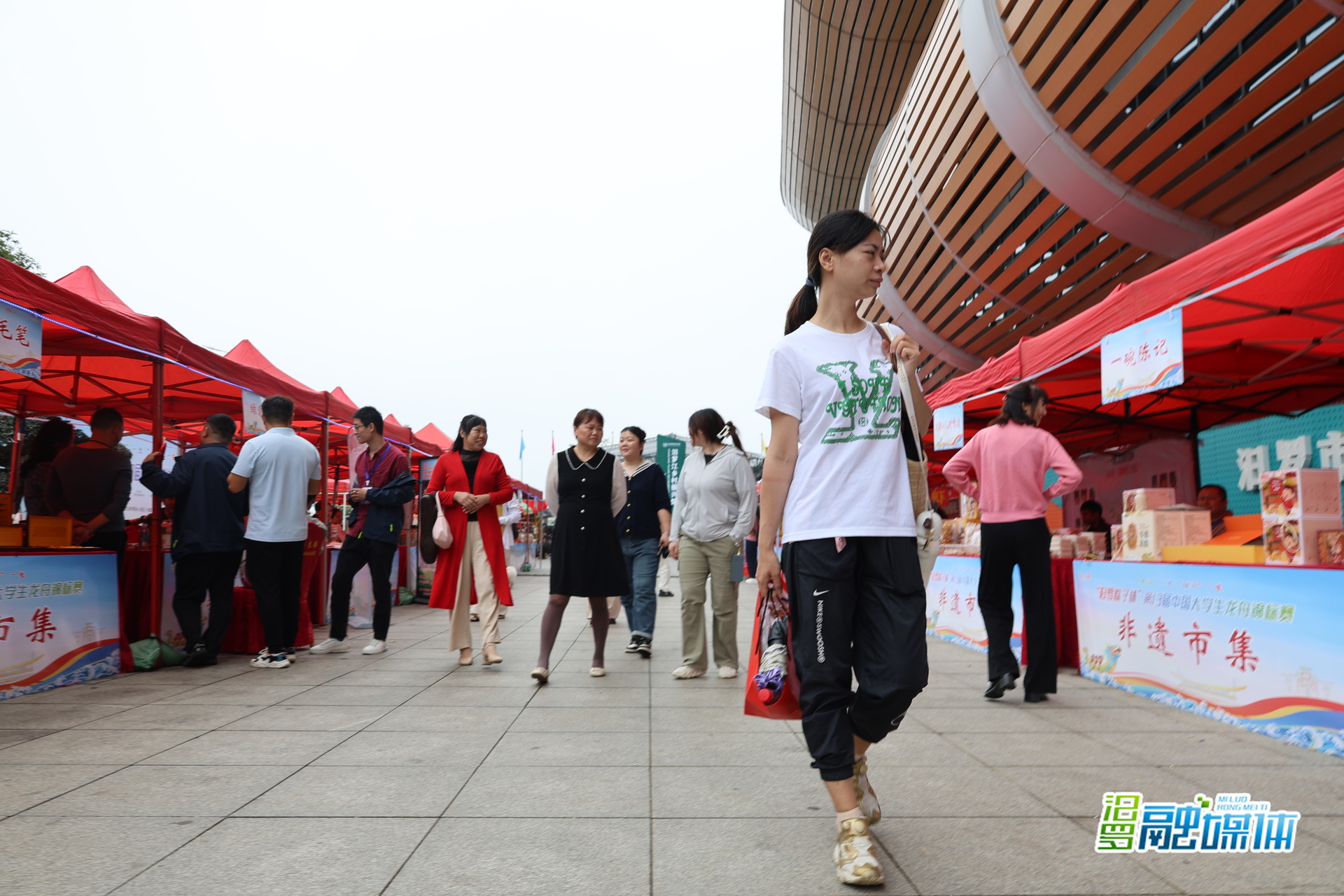 非遗市集上,二十余个特色展棚依次排开,空气中弥漫着汨罗粽子、长乐甜酒、汨罗皮粉等非遗美食的香气;川山毛笔、汨罗香囊等传统手工艺品琳琅满目,吸引众多游客驻足。大家不仅可以品尝、购买,还能亲手参与香囊制作、高跷体验等互动项目,感受非遗在指尖流动的温度。