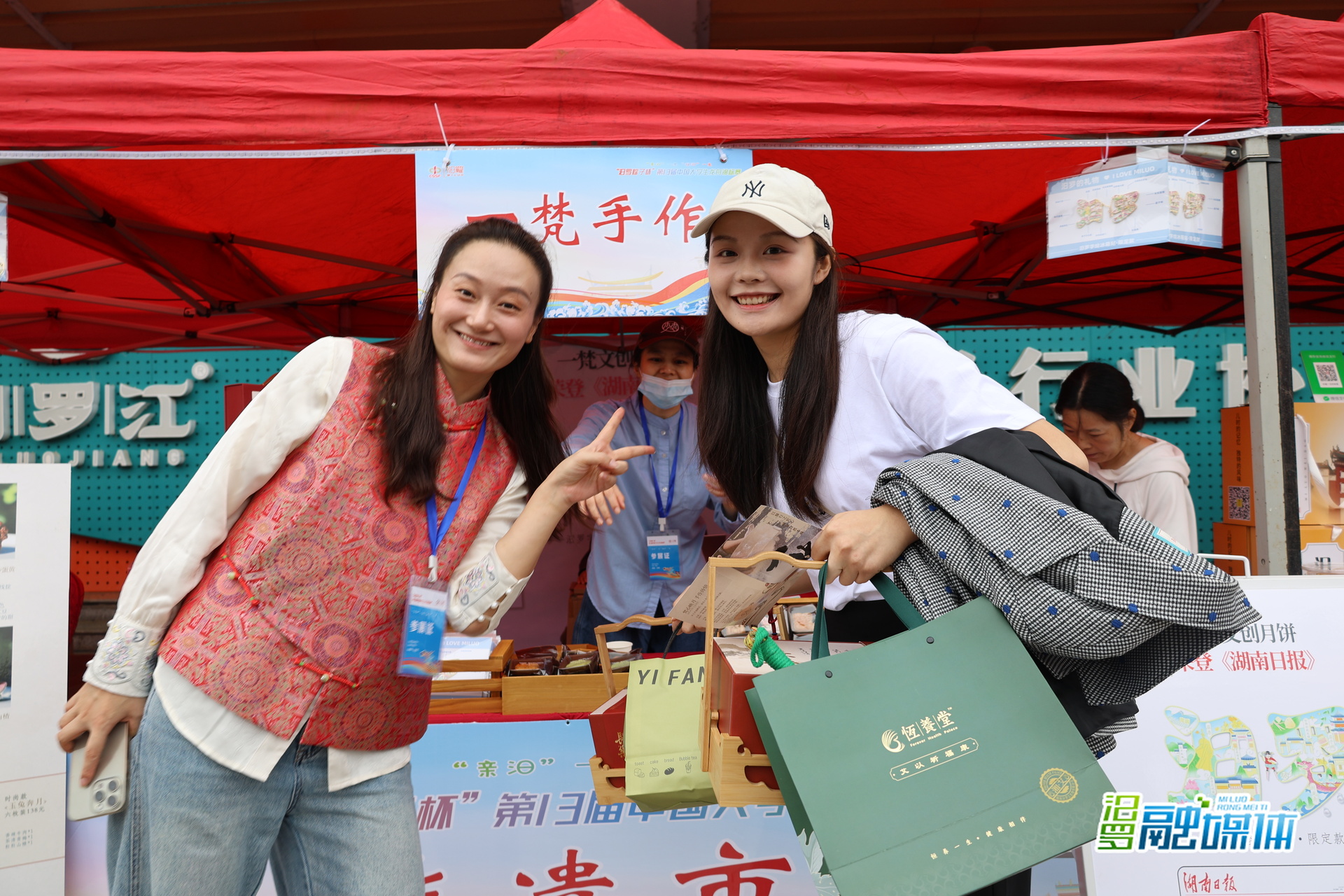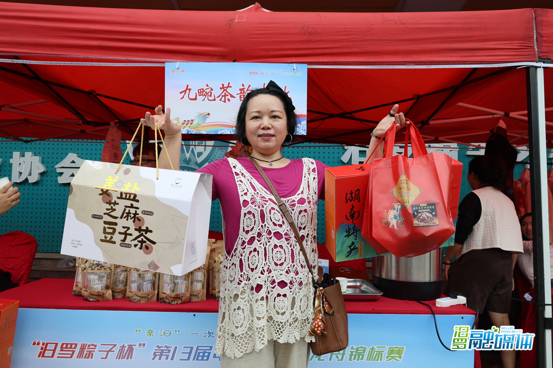 来自平江的曹女士和闺蜜专程赶来观赛,却在非遗市集上 “挪不动脚”。“我们退休后爱到处旅游,这次来看龙舟赛,顺便买了汨罗卤辣味、卤兔肉,还尝了姜盐豆子芝麻茶,味道特别,满是地方风情。”