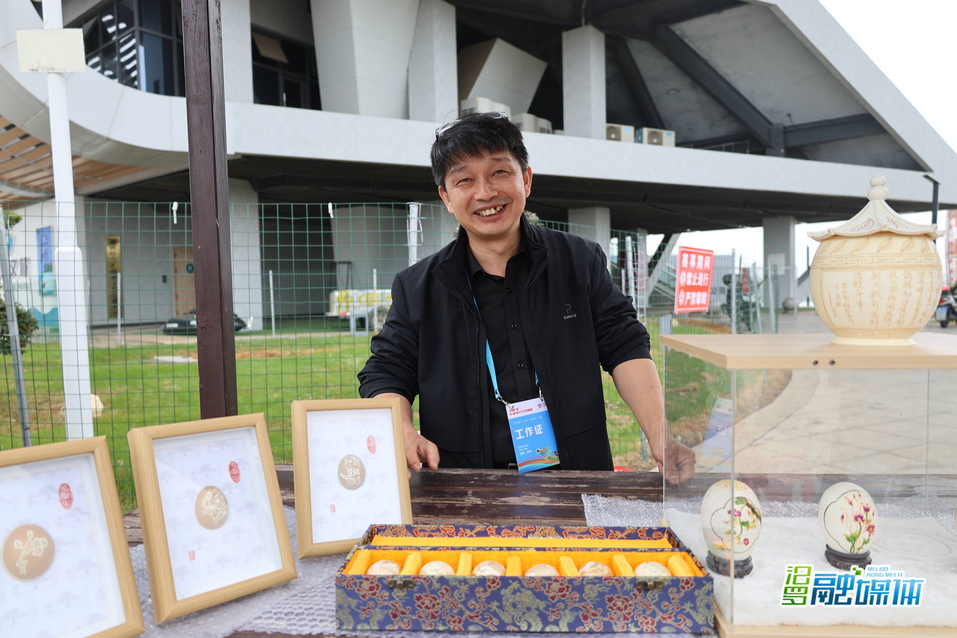 市集还特邀岳阳地区多位非遗传承人前来助阵,岳州剪纸、岳州窑、云溪蛋雕等项目纷纷亮相。对岳州窑的“宣传员”郭白鸥而言,这次大学生龙舟锦标赛是一个绝佳的宣传窗口 ,他的摊位前始终围满了体验手工制陶的游客。“我是第一次来汨罗参加龙舟赛的非遗展出,希望让更多年轻人了解岳州窑的历史与文化内涵。”一旁的云溪蛋雕同样吸引眼球,薄薄的蛋壳上雕刻出生肖动物与文字,展现出中国工匠的耐心与巧思。这些静态的非遗展示与动态的龙舟赛事相映成趣,共同构成一幅传统与现代交融的生动画卷。