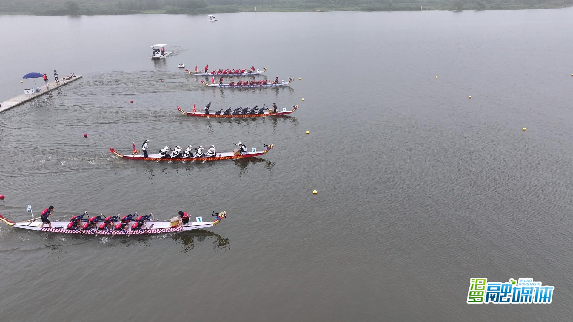 尽管细雨绵绵,龙舟健儿们的斗志却丝毫未减。发令枪响,一艘艘龙舟如离弦之箭般破浪而出,选手们动作整齐划一,挥桨有力,在江面上展开你追我赶的激烈竞争。岸边观众的加油声、呐喊声此起彼伏,现场洋溢着青春的活力与热烈的竞技氛围。