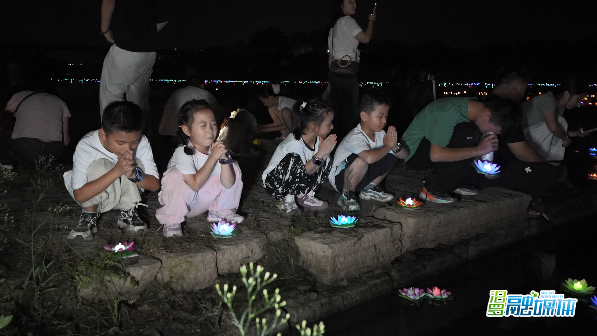 与此同时,新市古镇旁的汨罗江上已是灯火点点,盏盏河灯随波轻漾,承载着人们的美好心愿缓缓漂流。市民伏先生与家人一同放完河灯,笑容满面地说:“每年中秋都会带家人来放河灯。从谈恋爱开始,我和妻子就年年都来,相识、相恋到相守,一次都没落下。”
