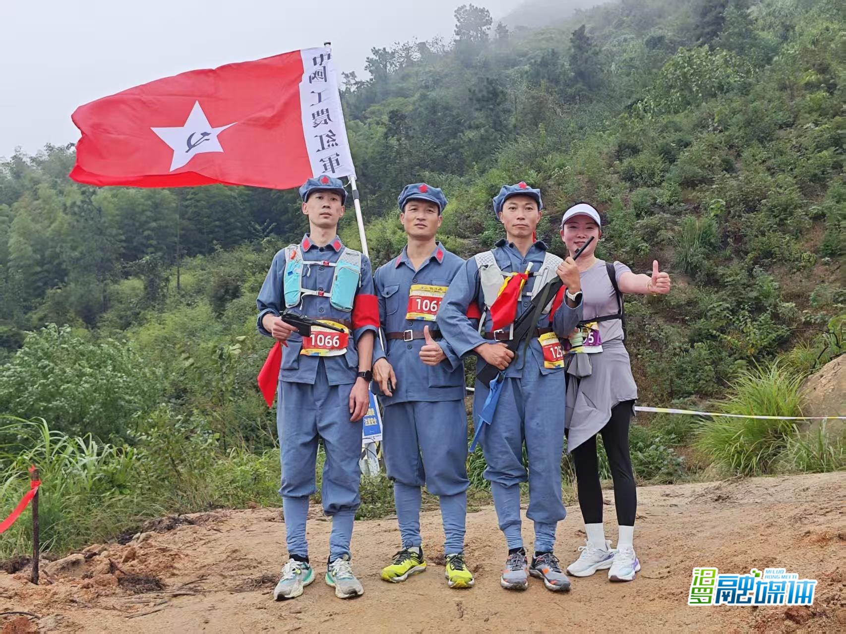 比赛当天,九名“红军战士”精神抖擞,背负冲锋号,红旗在队伍前方猎猎作响。在长达35公里的赛程中,他们并肩前行、彼此激励,共同跨越体力与意志的关卡。冲线瞬间,他们挥动旗帜,脸上写满自豪与喜悦,赢得了现场观众与其他选手的热烈掌声。