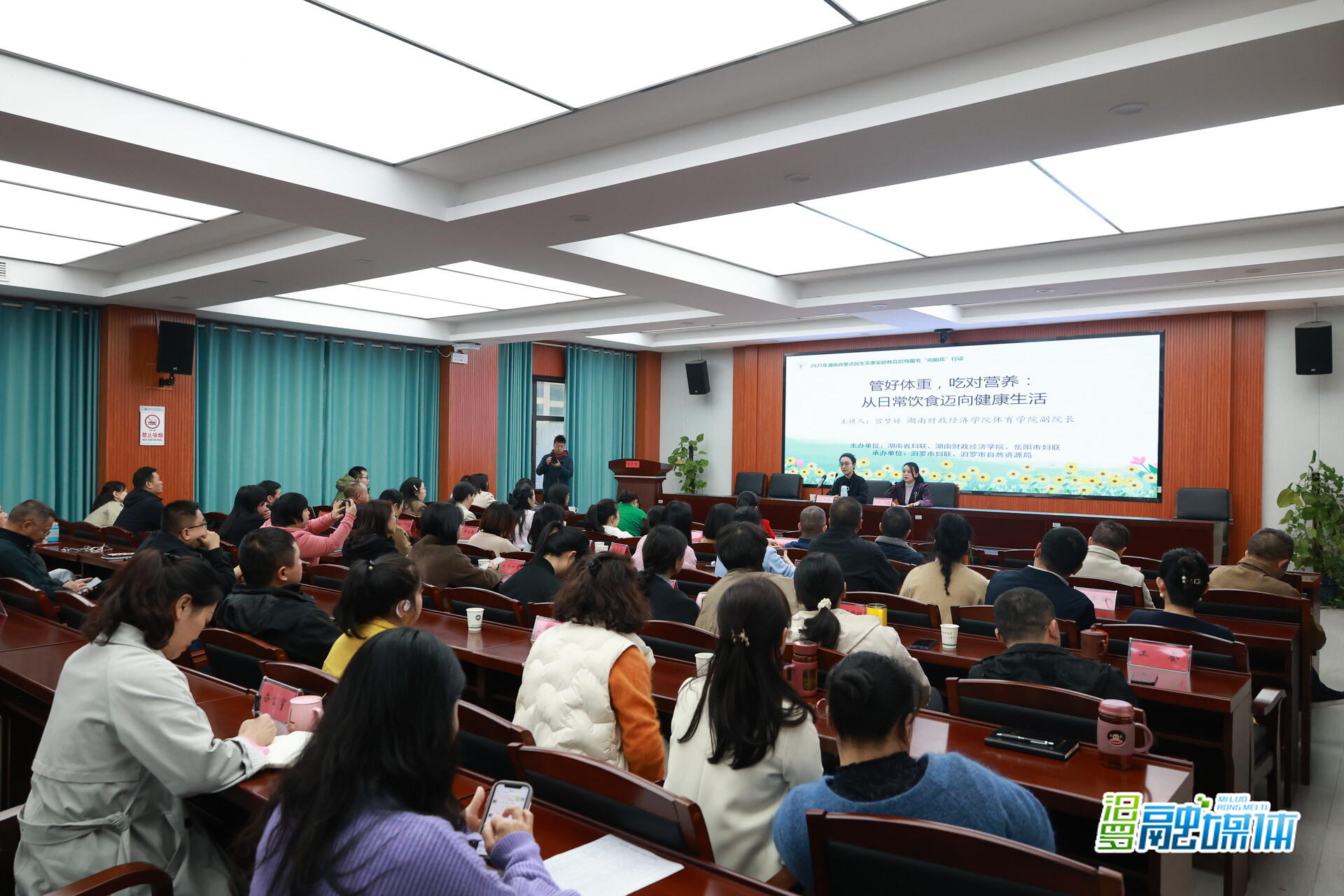 汨罗融媒体讯(记者 夏凡 仇鼎 易浩)10月22日,省妇联联合湖南财经学院,在汨罗市自然资源局举办湖南省家庭教育指导服务“向阳花”行动健康饮食主题活动。湖南财经学院体育学院副院长、理学博士、博士后宫梦婷以《管好体重,吃对营养:从日常饮食迈向健康生活》为题授课。市自然资源局、市妇联干部职工参加。