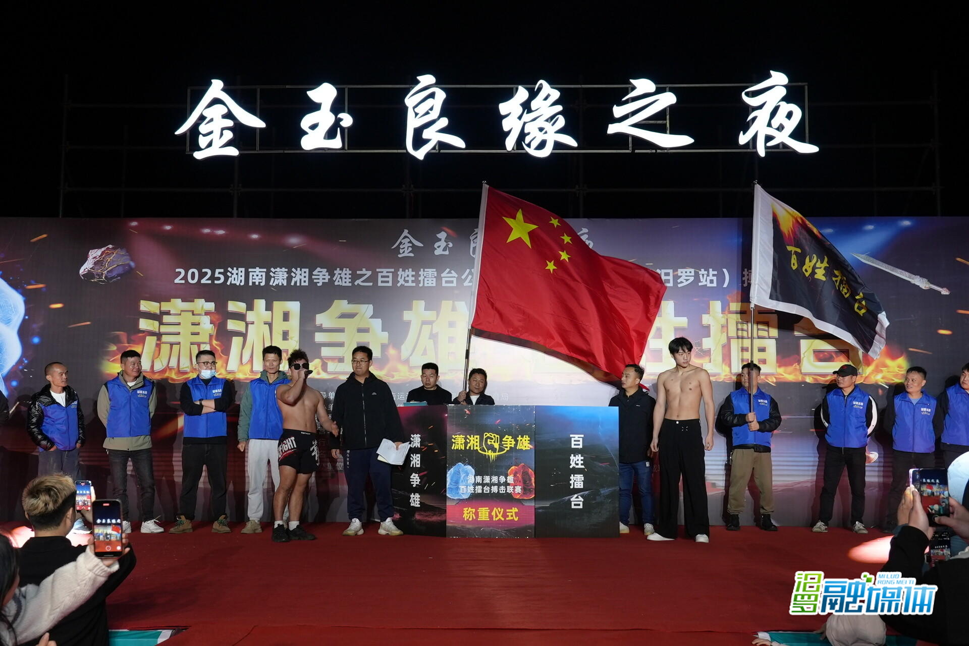 汨罗融媒体讯(记者 王洁 姚望)10月23日晚,汨罗江国际龙舟竞渡中心灯火辉煌,2025金玉良缘之夜“潇湘争雄·百姓擂台”公益助农(汨罗站)活动在此正式启动。本次活动由湖南省搏击运动协会、汨罗市教育体育局指导,汨罗市文旅集团有限公司主办,旨在弘扬中华武术精神,推动“文旅体”融合发展,助力乡村振兴。