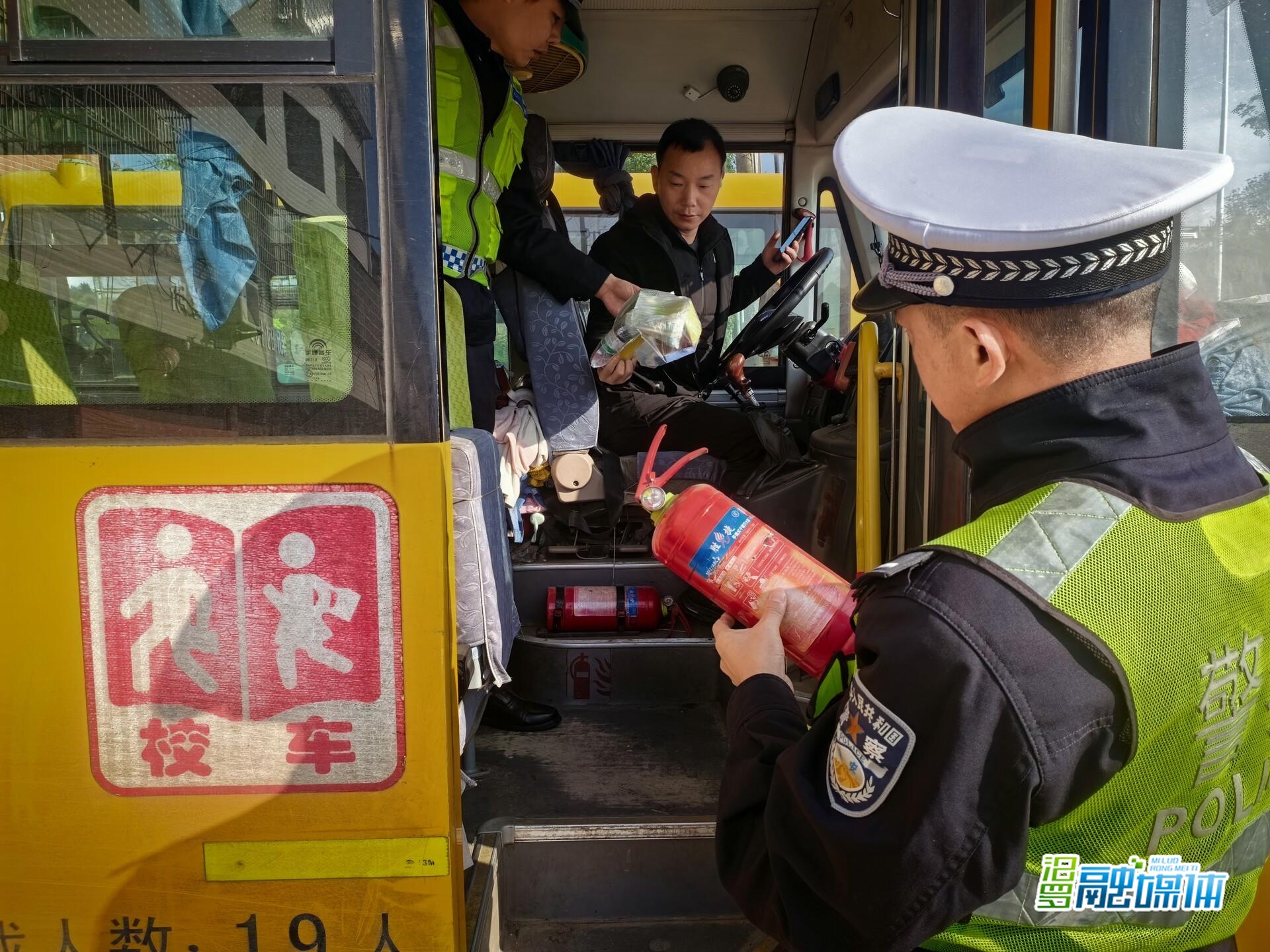 检查中,中队长黄海宴带领中队民辅警针对校车的运行资质、驾驶员的驾驶证件及校车上的安全防护配置、应急设施设备、载员规范等逐项核查,着重检查了应急锤的规定摆放位置、速碎车窗的效果、灭火器可否正常使用,确保突发情况时能及时处置。同时,中队民辅警还对校车驾驶员开展了交通安全警示教育,强调严禁超速、超载、分心驾驶等违法行为,强化校车安全管理。