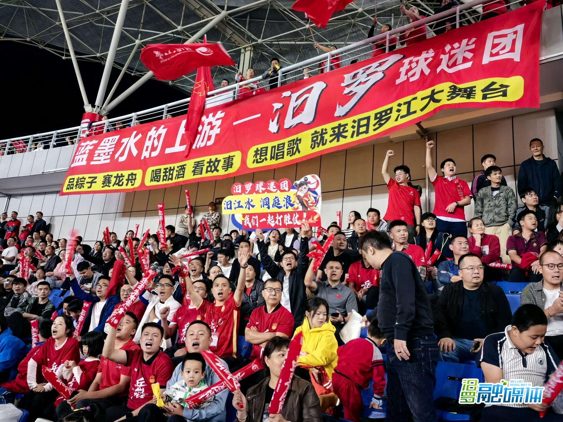 汨罗融媒体讯(记者 甘芳芳)10月25日晚,益阳湘超赛场的看台上,一抹“汨罗红”格外醒目,近 100 名汨罗球迷自发组团,从汨罗奔赴客场,为岳阳队呐喊助威。