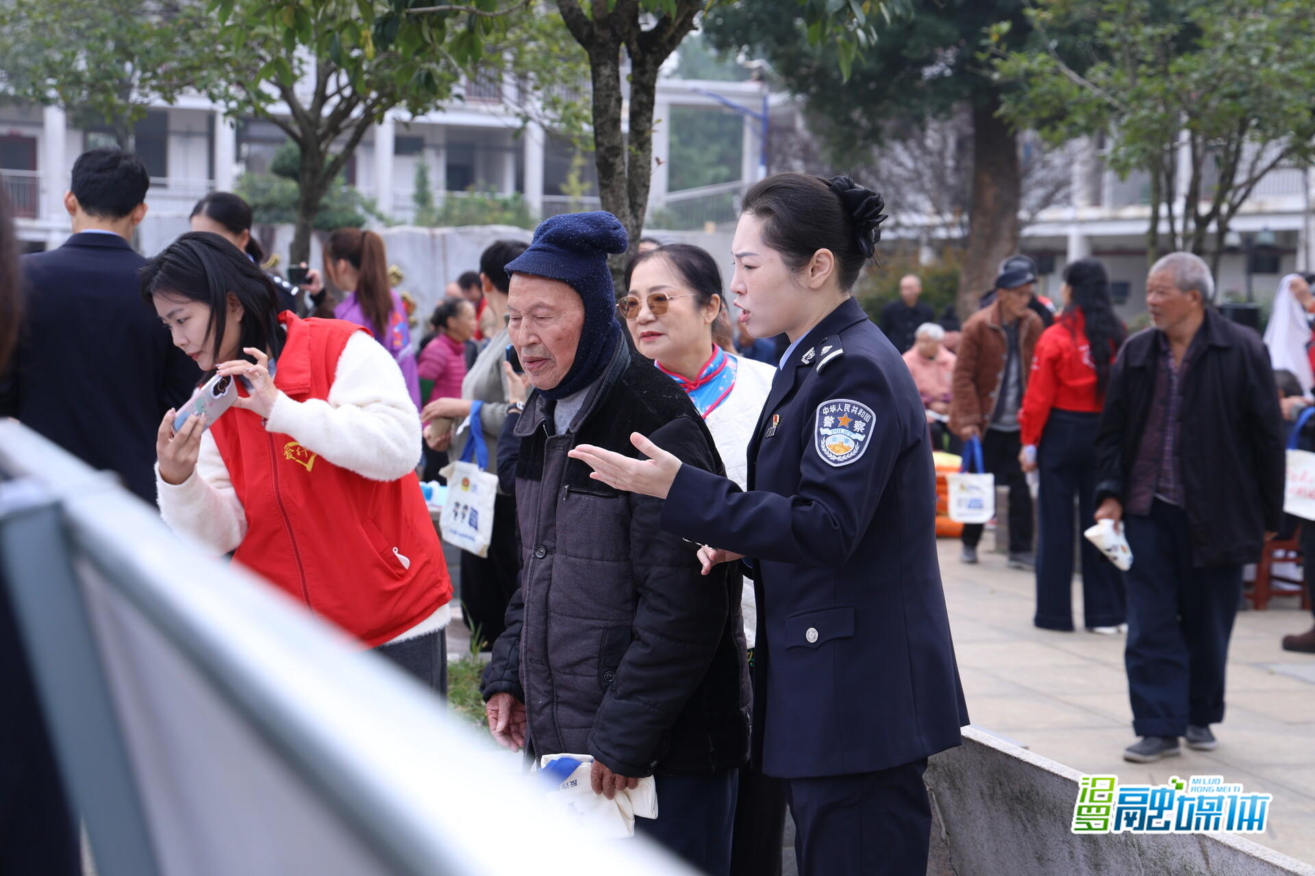 活动现场暖意融融,内容丰富。市公安局民警及反诈小分队通过布置宣传展架、发放宣传手册、剖析真实案例等多种形式,与老人们亲切互动,生动讲解防诈骗知识,帮助老人们筑牢安全防线。反诈歌曲《反诈阵线联盟》更是以轻松活泼的形式赢得了全场的掌声与喝彩。