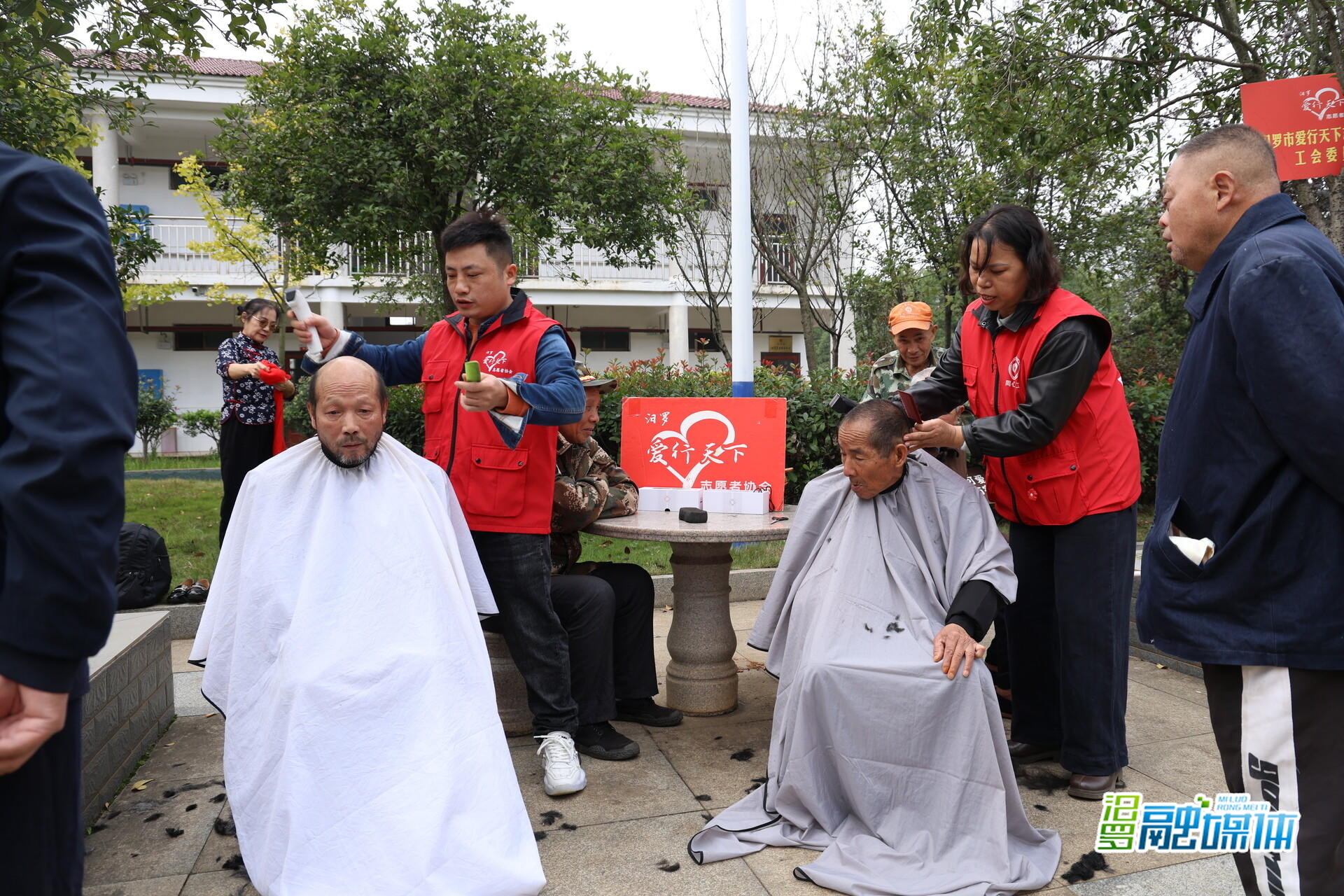 志愿者为老人理发