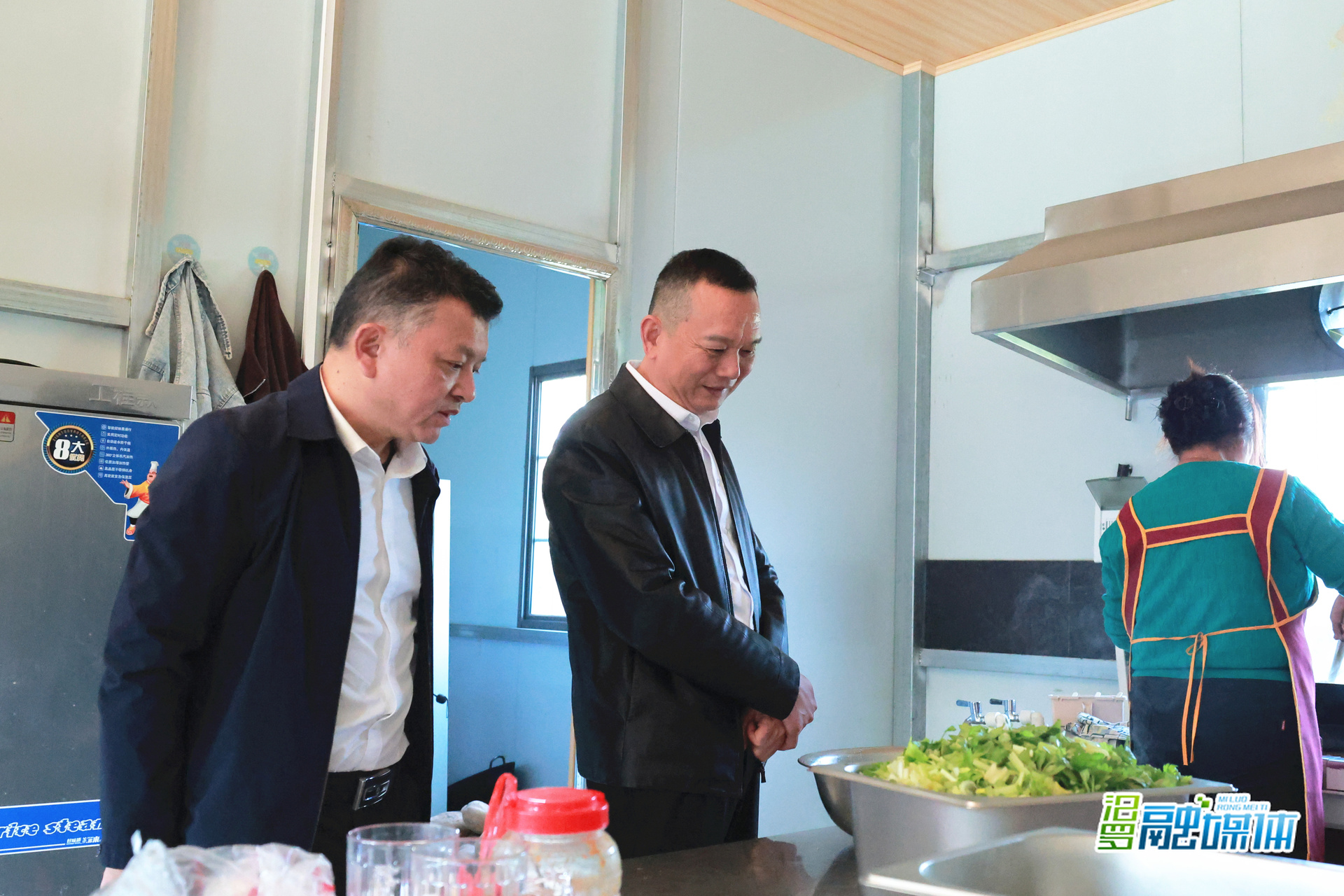 岳阳市民政局副局长陈遇春(右)参观暖心食堂做菜