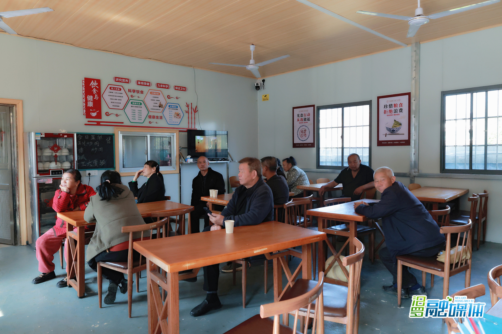 三江镇花桥社区老年食堂中午等待就餐的老人