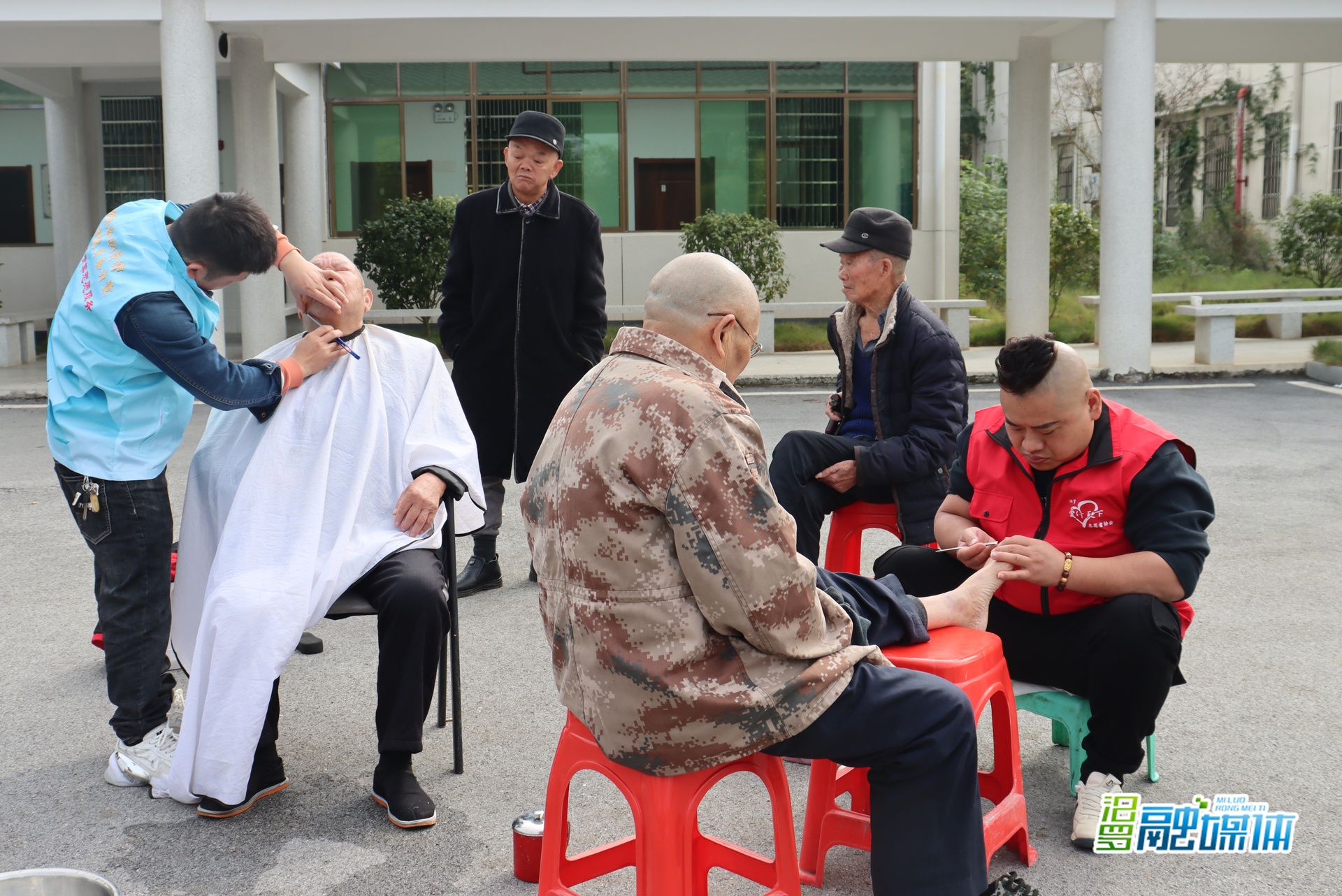 三江镇卫生院的医护人员为老人们看诊,测量血压并讲解健康注意事项;汨罗市爱行天下志愿者协会、任弼时青年志愿服务队的志愿者们为老人理发、修剪指甲,现场满是欢声笑语。