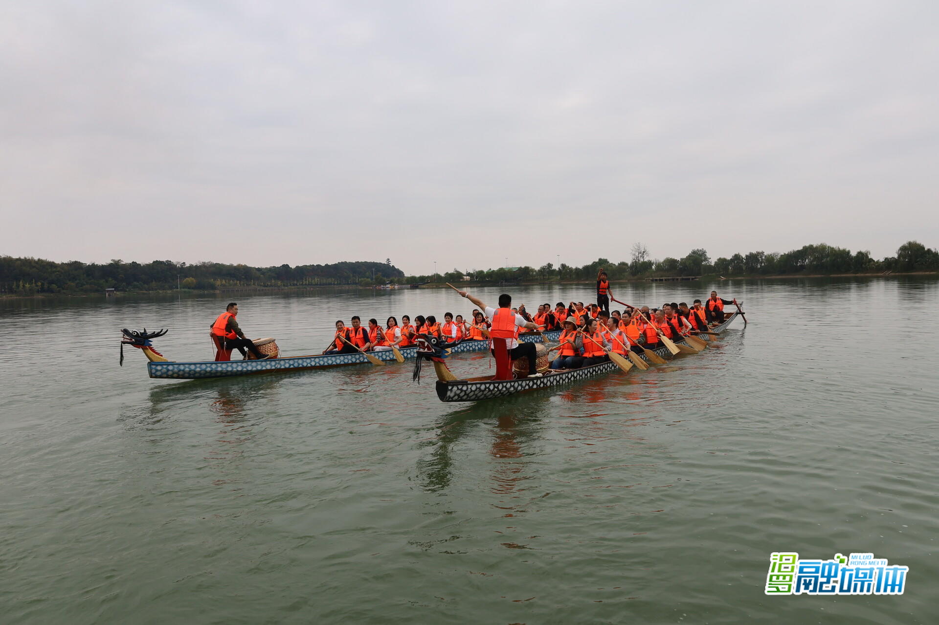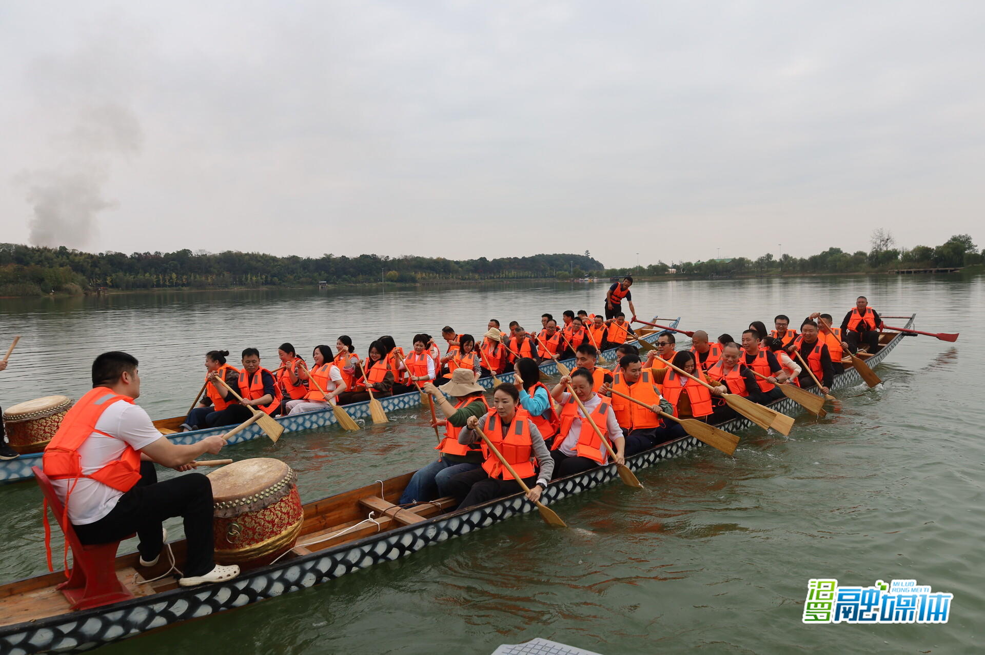 随后,活动迎来高潮环节——龙舟体验竞赛。在风景如画的香草湖上,第一支部与第五支部先后展开龙舟拔河与龙舟竞速体验赛。湖面鼓声震天,队员们奋楫挥桨、齐心向前;岸边加油声、呐喊声此起彼伏,气氛热烈。这场兼具趣味与竞技的龙舟活动,将“奋斗笃行、团结协作”的龙舟精神从口号转化为真切体验,有效激发了团队的荣誉感与内在活力。