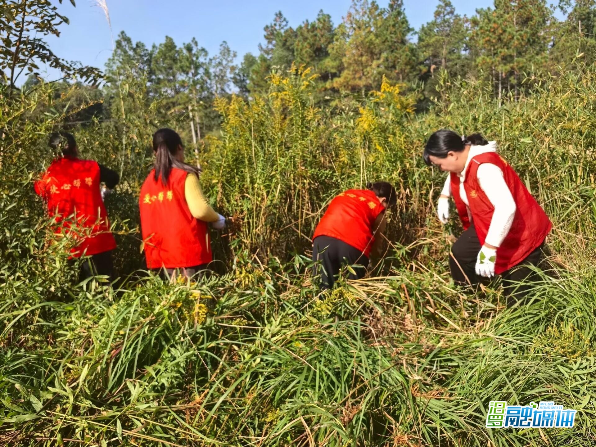 志愿者们手持镰刀、铁锹等工具,分工协作、配合默契,对成片生长的“加拿大一枝黄花”展开彻底清理,不放过任何一个隐患角落。有人弯腰徒手拔除幼苗,有人挥镰砍断高大植株,还有人负责收集、打包残株……现场一派热火朝天的劳动景象。