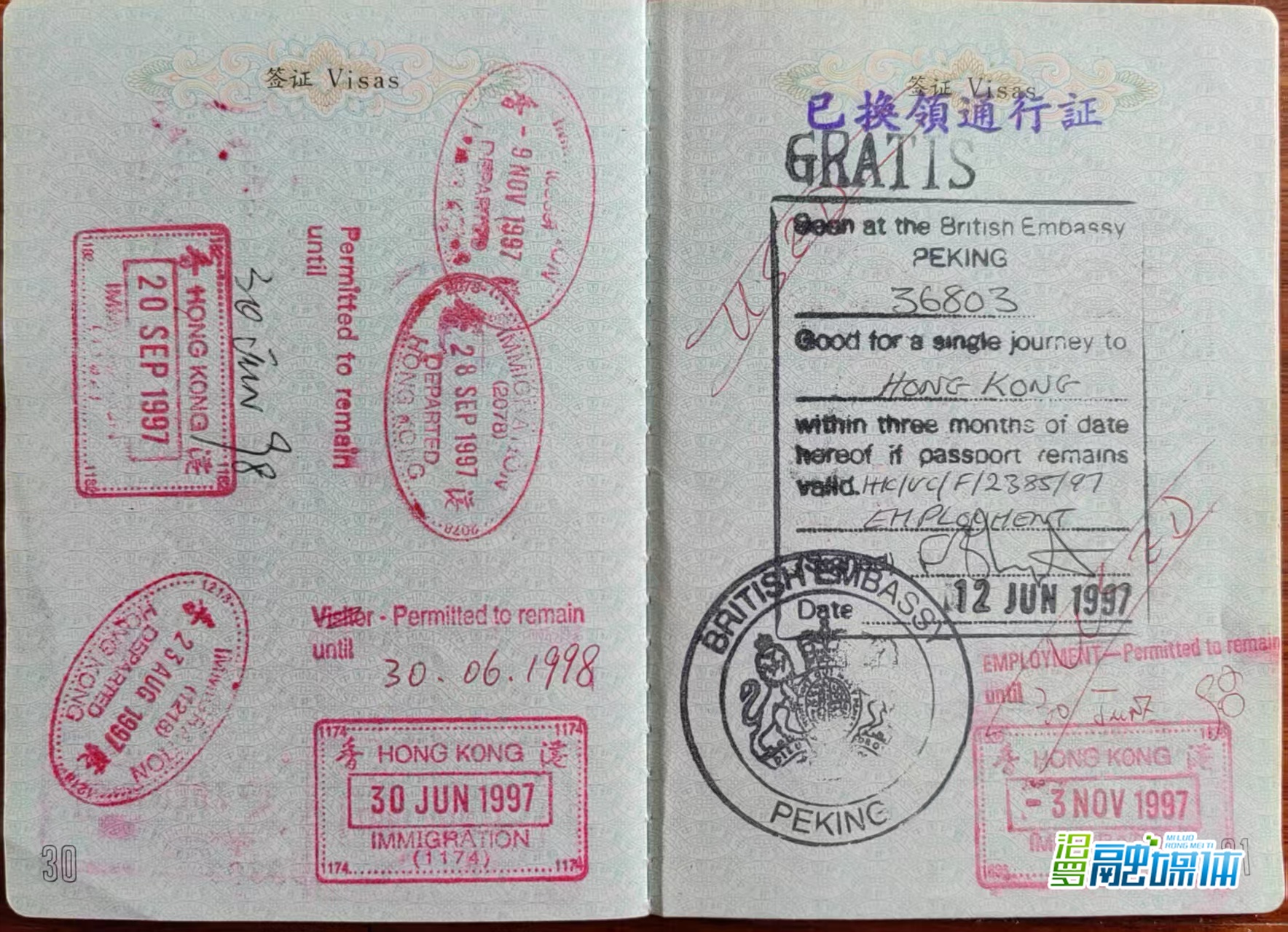 彭勇当年乘坐的迎接香港回归97次专列的签证