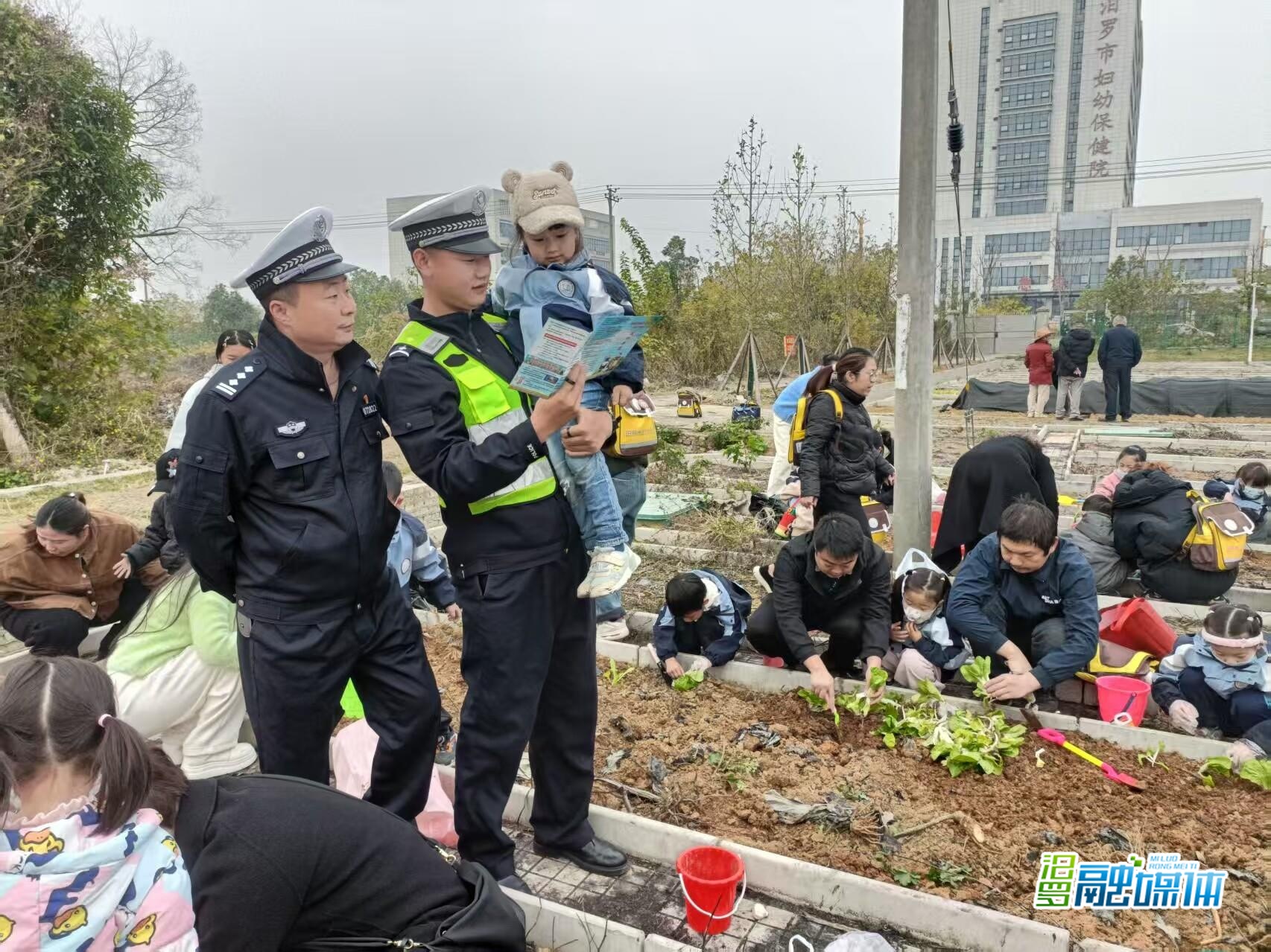 汨罗融媒体讯(记者 张为)12月2日是全国交通安全日,汨罗市交警大队古培中队结合市幼儿园开展的学前教育及校外拓展运动,走进汨罗镇瞭家山共享趣菜园,借助这里的亲子农耕劳作活动,开展了一场接地气的交通安全宣传活动,将安全知识融入群众日常休闲场景。