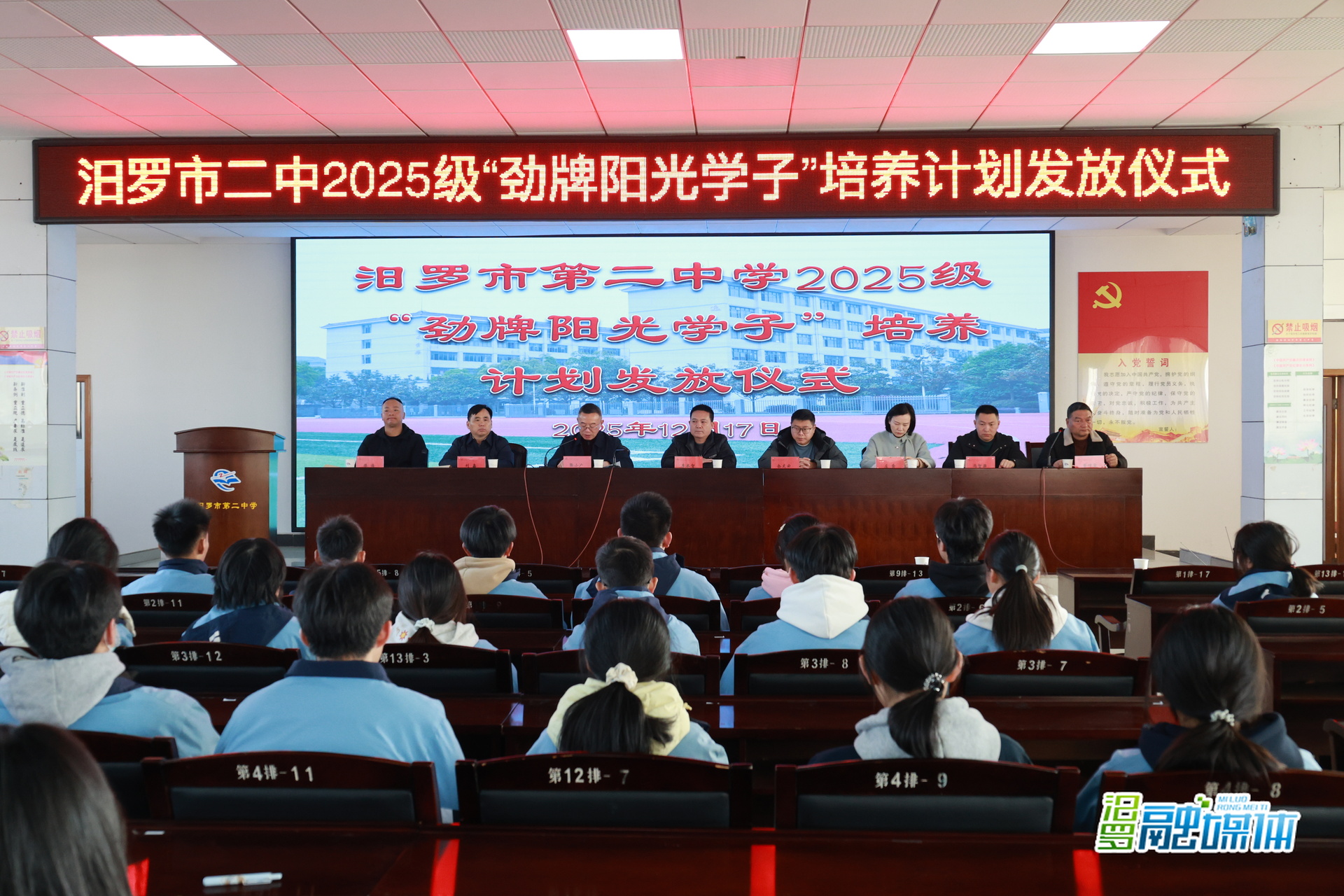 汨罗融媒体讯(记者 周小珺)12月17日,2025级“劲牌阳光学子”培养计划发放仪式在汨罗市第二中学举行。这项由劲牌公司与希望工程合作的公益项目,已在汨罗市持续实施十年。共青团汨罗市委、市教育体育局、汨罗市二中及劲牌公司代表与部分受助学生、班主任共同见证了这一爱心时刻。