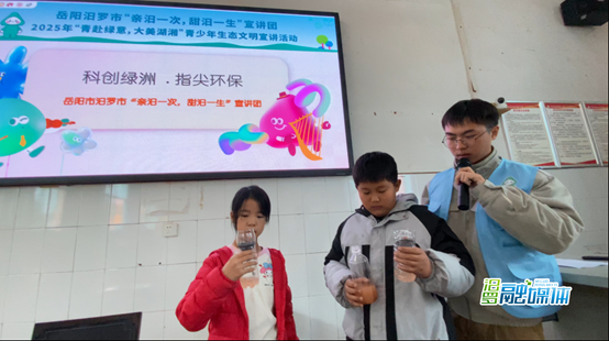 这场名为“青赴绿意 大美湖湘”的宣讲,是共青团中央社会联络部指导的长江流域“守护好一江碧水”系列公益活动的重要组成部分。汨罗市选调生团队携手湖南师范大学“青赴绿意”总队与弼时镇人民政府,将环保课堂搬进校园,用故事、实验与歌声,串联起一堂生动的生态教育课。