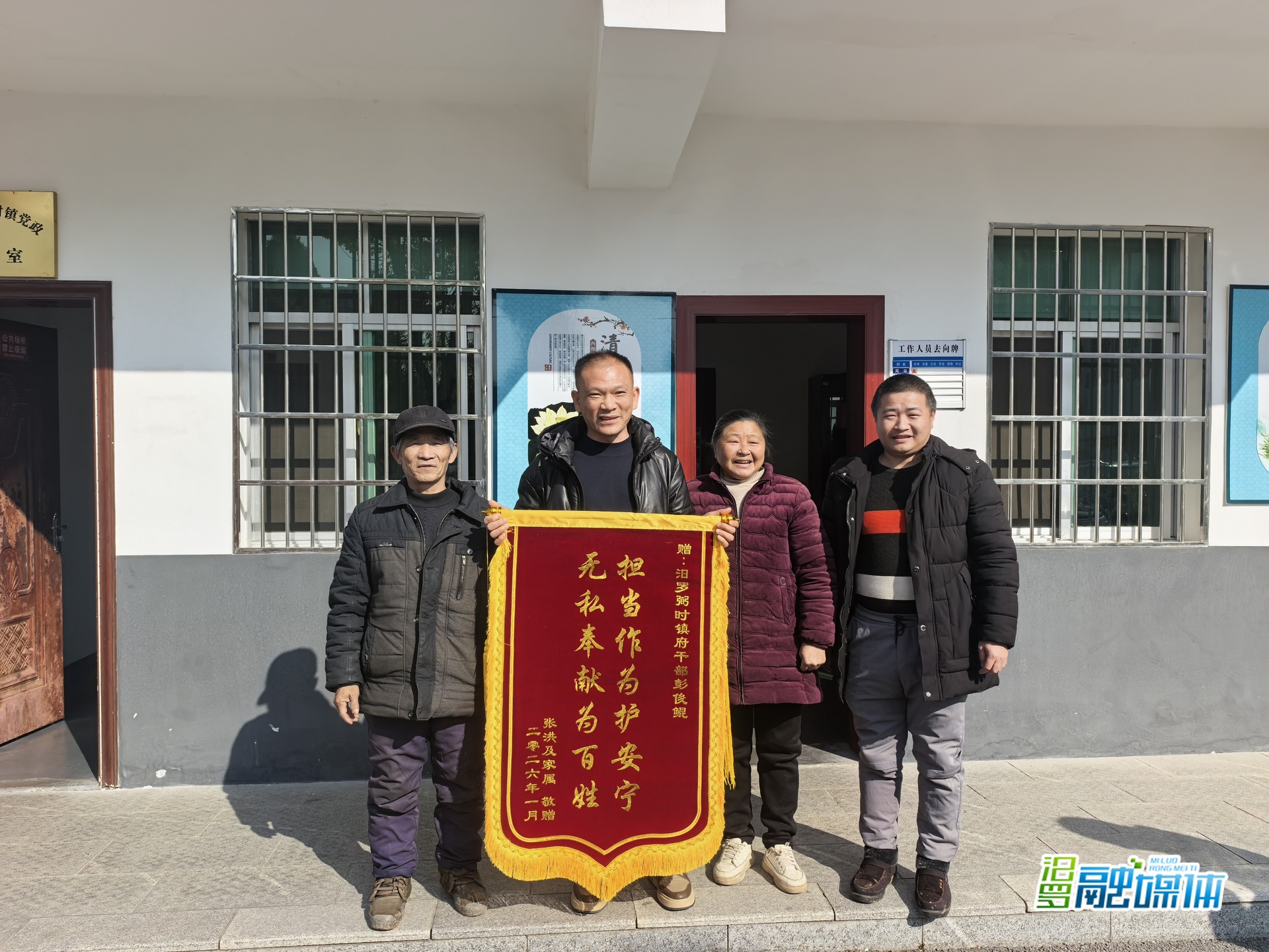 汨罗融媒体讯(通讯员 王思博)1月8日,一面印着“担当作为护安宁 无私奉献为百姓”的锦旗被送到弼时镇政府,赠旗群众紧紧握住工作人员的手,由衷感谢镇机关干部彭俊鲲在火情危急时刻挺身而出,成功守护群众生命财产安全。