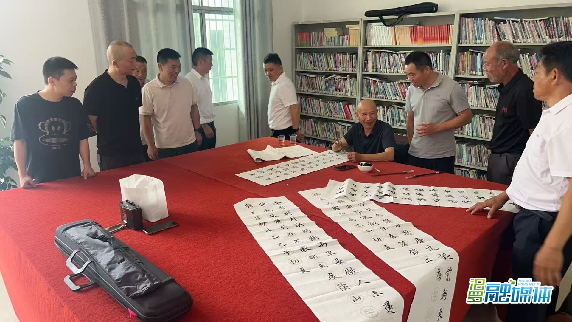 三江镇花桥社区的老人们在屋场互助养老点练书法