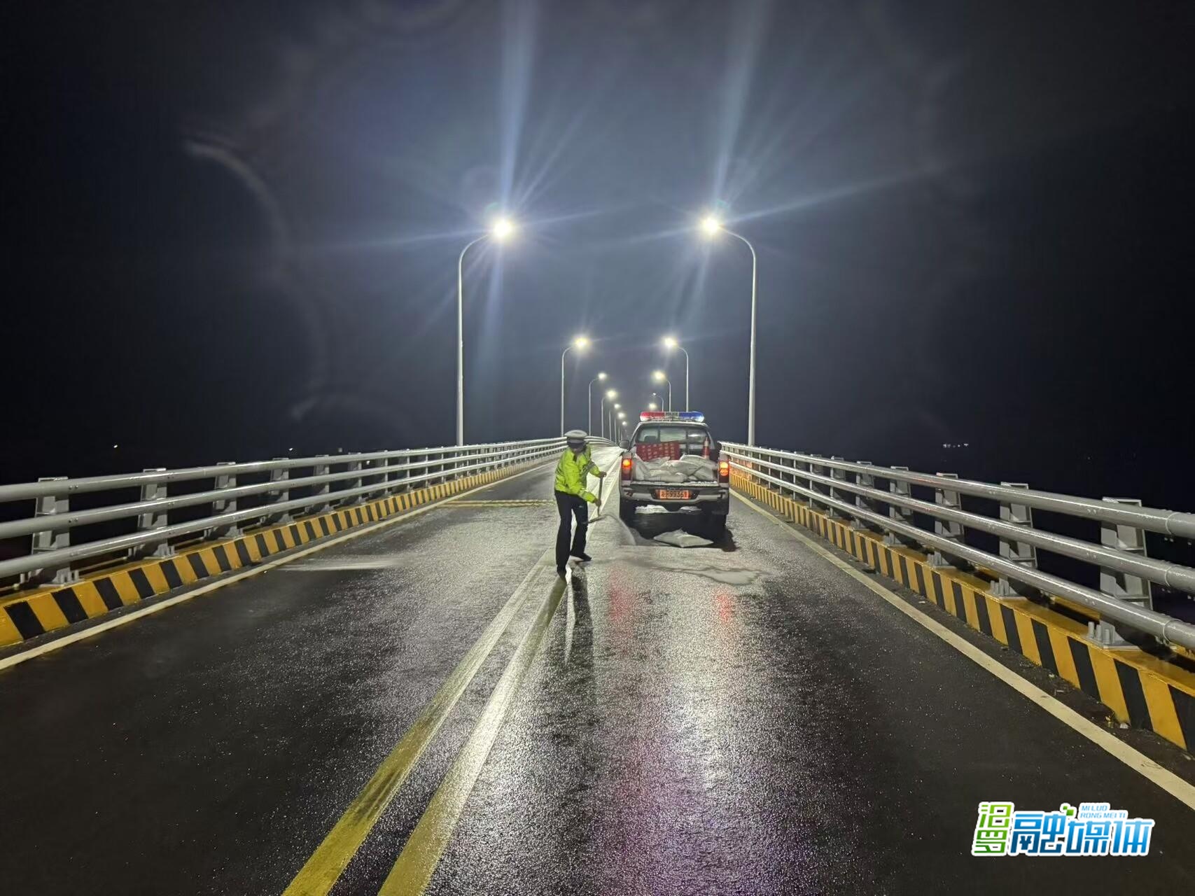 为提升雨雪冰冻等恶劣天气下的应急处理能力,汨罗市已全面启动道路交通应急处置预案。各中队提前对桥梁、坡道等重点路段撒盐防冻,防止路面结冰。交警指挥中心实行24小时视频巡查机制,对城区、国省道及主干道路况进行全覆盖实时监控,确保第一时间发现并处置异常情况。