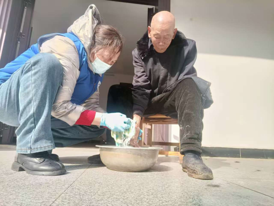 与此同时,更多温暖正流淌在不同村镇:在古培镇,助老员为失能老人耐心按摩,舒缓筋骨;在大荆镇,助老员为半失能老人洗头、吹发,细心整理仪容;在归义街道、白塘镇,助老员帮助老人打扫房间、整理衣物,让家焕然一新,迎接新春。服务之余,他们不忘排查家中火电隐患,讲解安全常识,让老人们在温暖中更添一份安心。