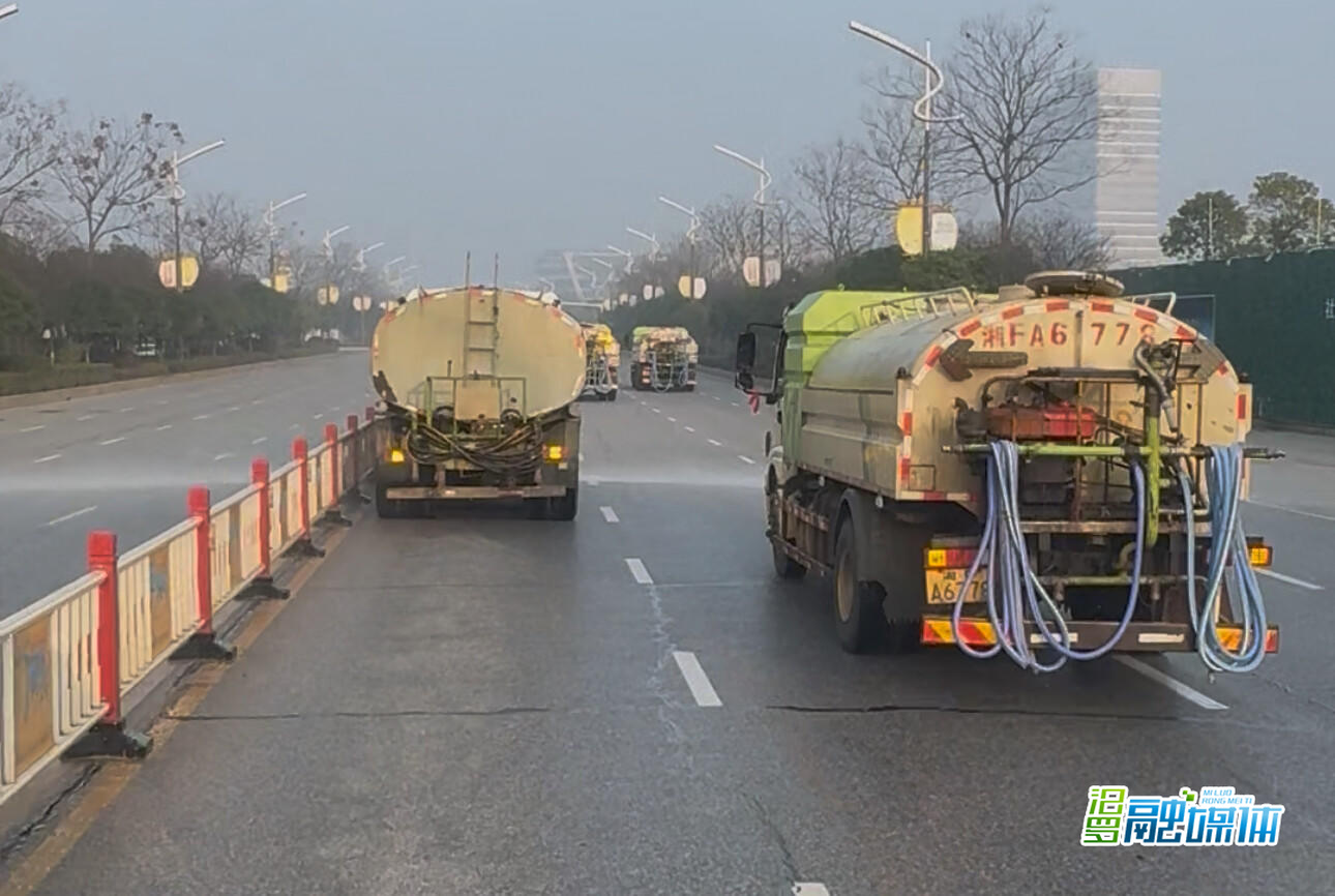 “前面都是我的兄弟!初二,我们就该去属于我们的‘战场’了!”车窗外的后视镜里,洒水车、护栏车、中转车、摆臂车、勾臂车……一辆辆环卫车辆鱼贯而出,汇成一条长龙,奔赴新年的第一线。