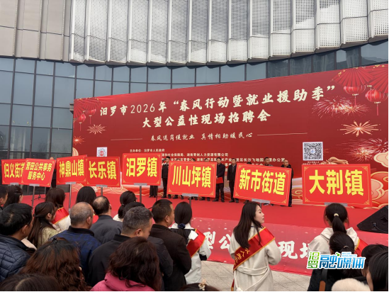 汨罗融媒体讯(通讯员 刘张弛)2月25日,汨罗市2026年“春风行动”大型招聘会现场人潮涌动。川山坪镇组织辖区内82名求职者统一乘车前来,在镇工作人员引导下,大家有序穿梭于各企业展位之间,详细了解岗位信息,与企业招聘人员面对面交流。当天,近八成求职者与用人单位达成初步就业意向。