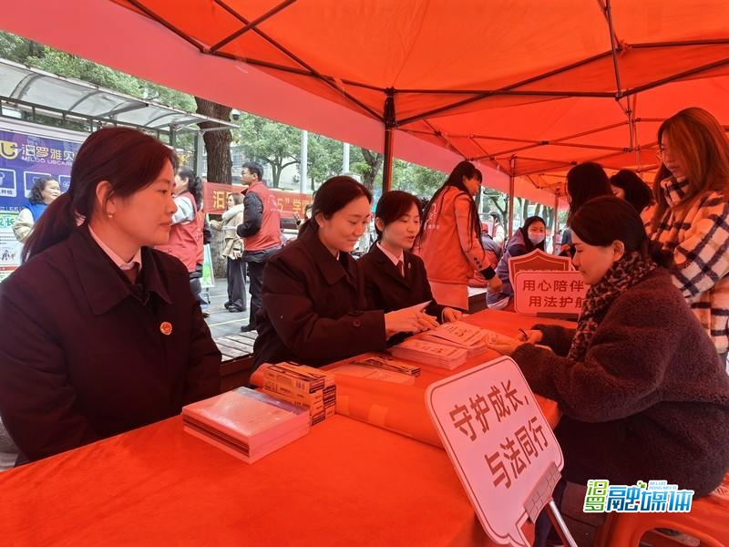 “答对这道题可以转一次转盘赢奖品。”在“法治能量站”互动区,干警们精心设计的“法律知识转转乐”游戏吸引了不少市民参与。转盘上写满了与青少年日常生活密切相关的法律题,参与者转动转盘、回答问题,答对即可获得法治书签、主题文具等普法小礼品。