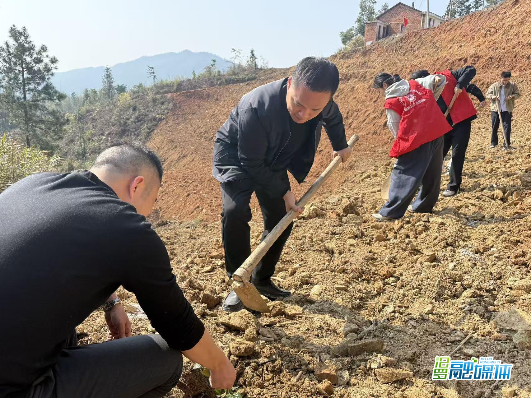 活动现场,大家分工协作、默契配合。挥锹挖坑、扶苗对齐、填土压实、提水浇灌,每一个步骤都认真细致、规范到位。青年干部们干劲十足,党员群众主动参与,大家齐心协力,以实际行动践行绿色发展理念。不一会儿,一棵棵树苗整齐挺立,为春日三江增添勃勃生机 。