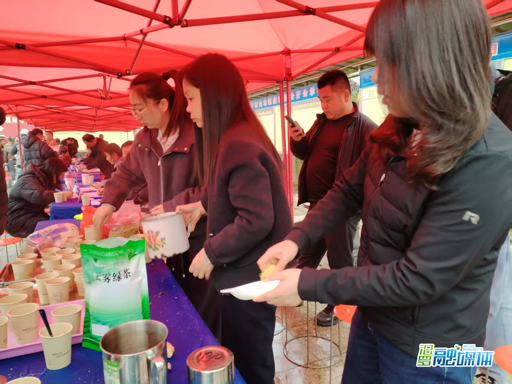 针对当日阴雨天气,工作人员提前搭建临时雨棚,摆放座椅,为求职者遮风挡雨。招聘现场,求职者认真咨询岗位信息,企业耐心解答。便民服务点上,镇村干部为求职者泡制热气腾腾的豆子茶驱寒暖身。“下雨天能找到工作,还能喝上热豆子茶,心里特别暖!”村民王女士笑着说。