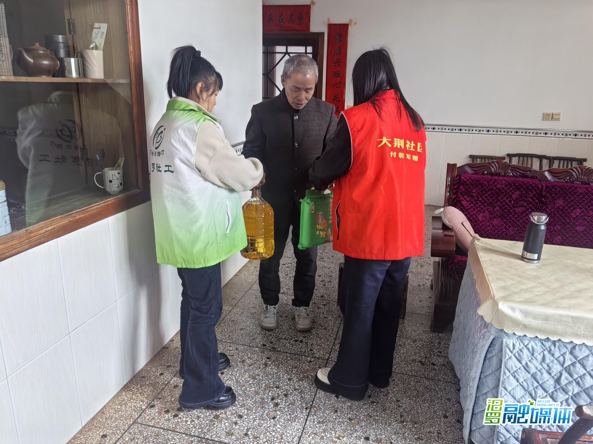 活动中,社工与志愿者逐户上门,与困难群众促膝长谈,详细询问其身体状况、家庭收入及实际困难,送上米、油等生活物资,同时排查老人家中用电用气安全隐患,叮嘱其保重身体、有困难及时联系。贴心关怀让困难群众真切感受到党和政府的温暖。