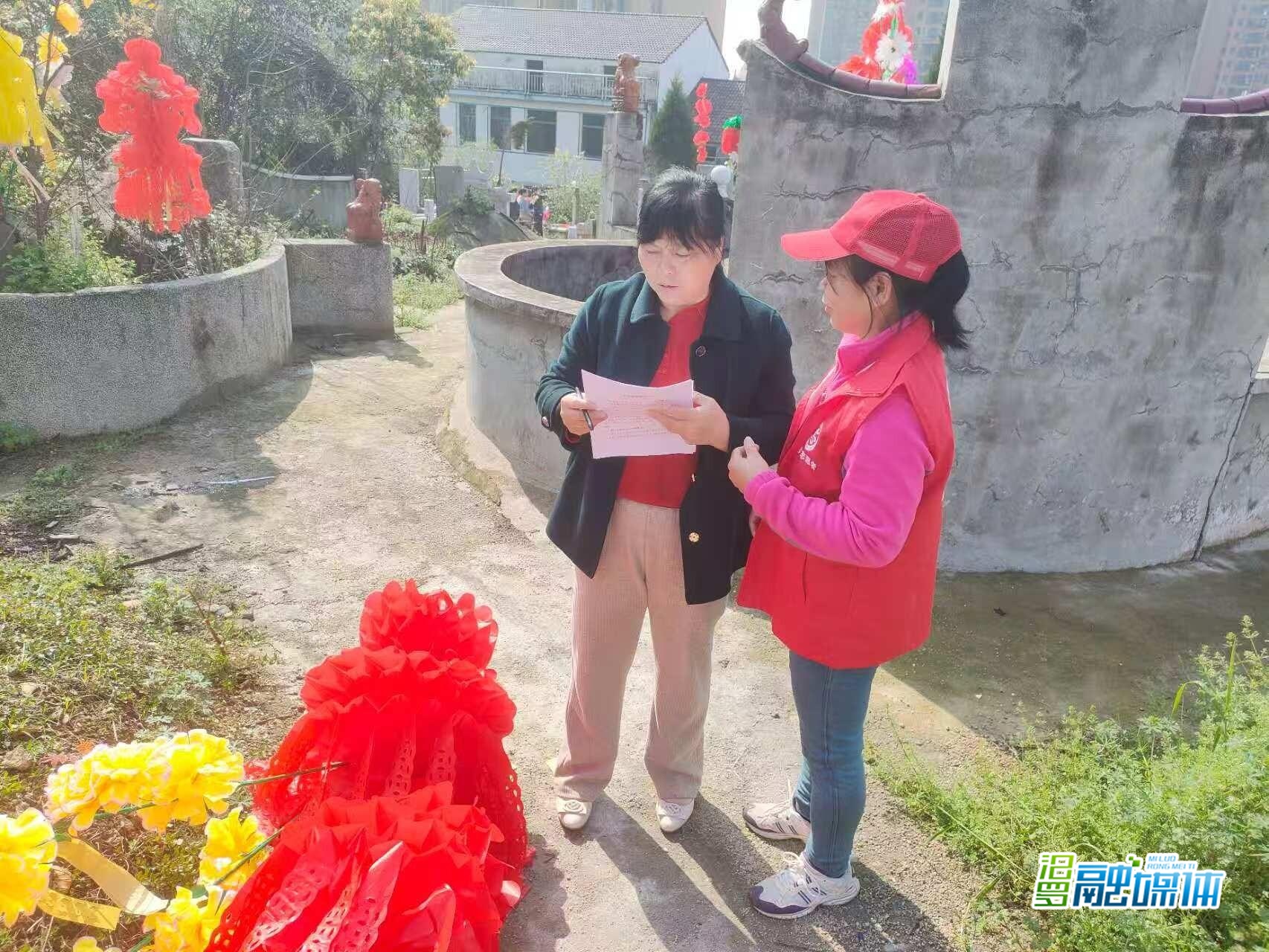 活动现场,身穿红马甲的志愿者们耐心向祭扫群众讲解禁烧纸钱、禁放烟花爆竹相关政策,细致普及森林防火安全注意事项,并积极引导大家摒弃陈旧祭扫陋习,主动选择鲜花祭扫、绿植缅怀、家庭追思等绿色低碳、文明简约的祭扫方式,让缅怀追思更显文明、更有温度。