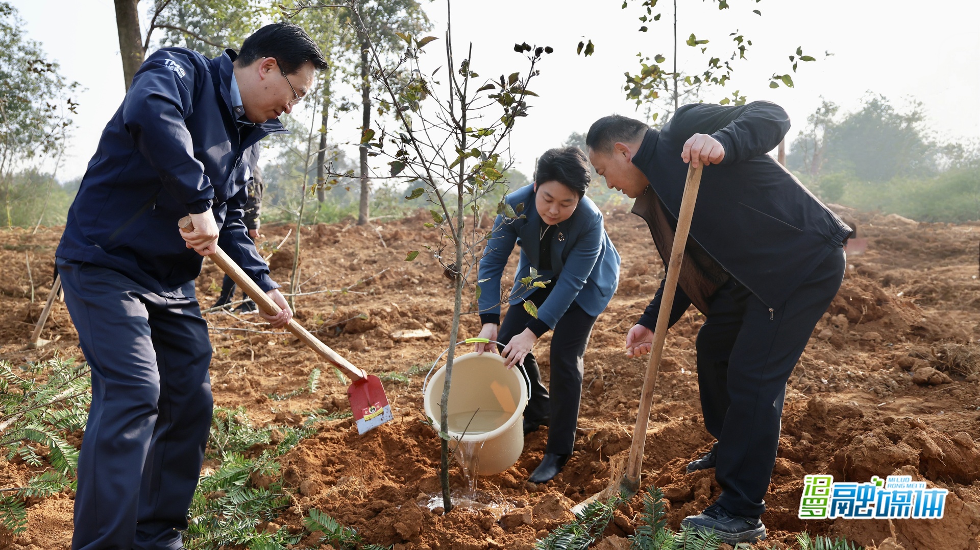 活动现场,大家分工协作、干劲十足,扶苗培土、浇水定根,各个环节井然有序。经过一番忙碌,一株株新绿整齐林立,生机勃勃。当天共种植半枫荷、铁坚油杉、山桐子等500余株。
